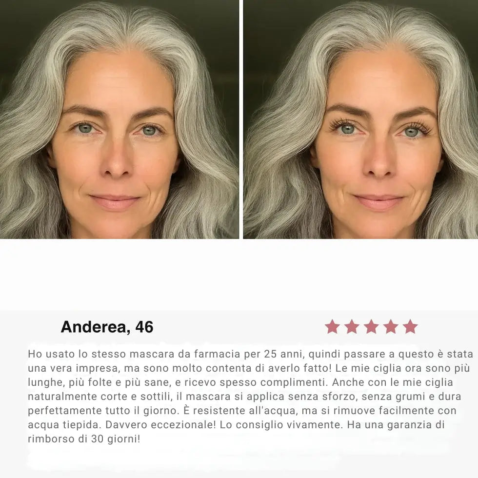 All’inizio ero scettica, ma grazie alla prova senza rischi ho deciso di provarla. Ora non voglio più nessun altro mascara – le mie ciglia non sono mai state così belle!